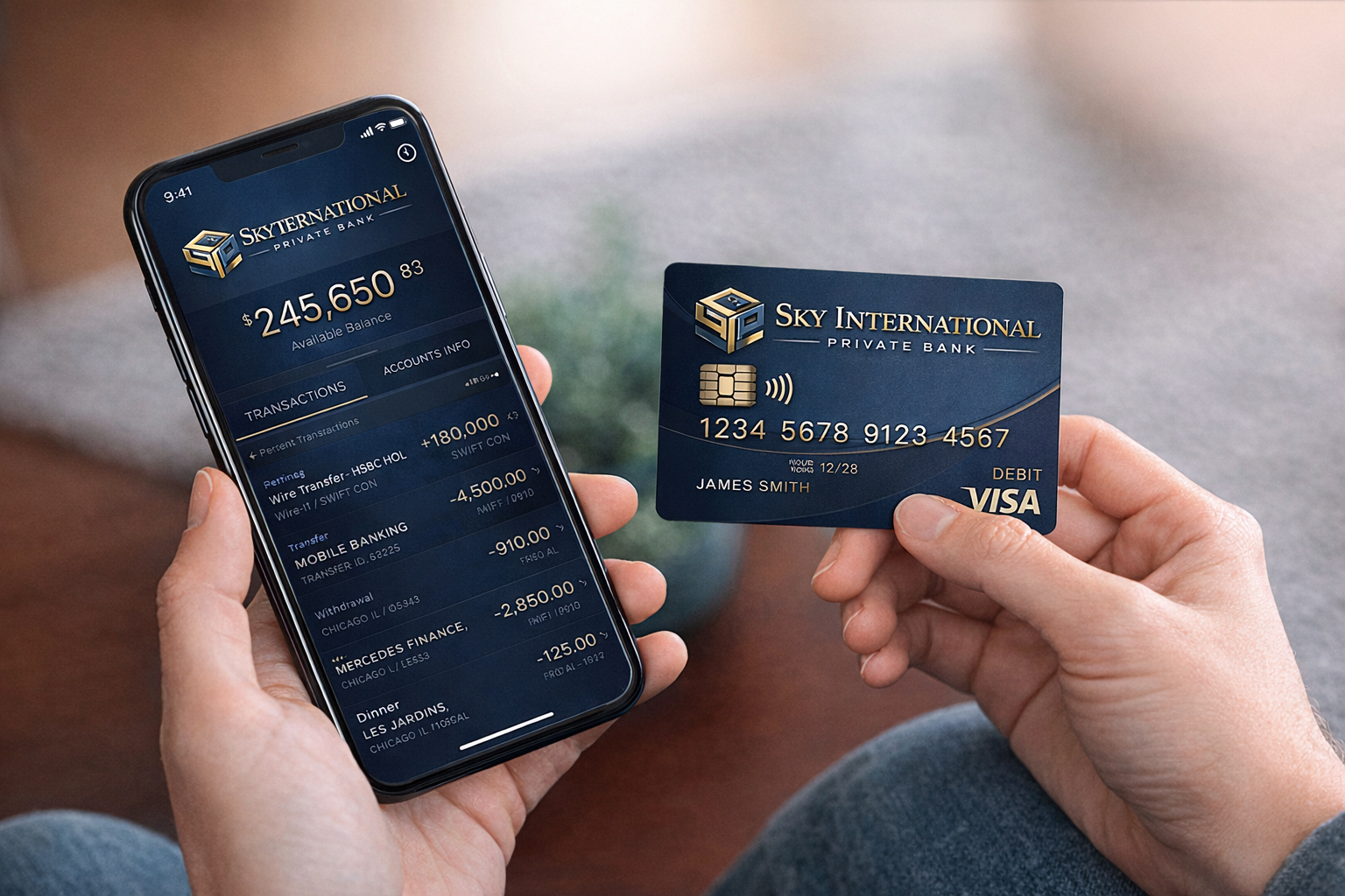 Sky International Private Bank mobile app on iPhone and iPad: transfers, balances, and everyday banking.